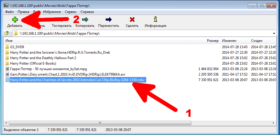 Выделяем нужный файл, нажимаем кнопку «Добавить». В открывшемся окне «Добавить к архиву»: