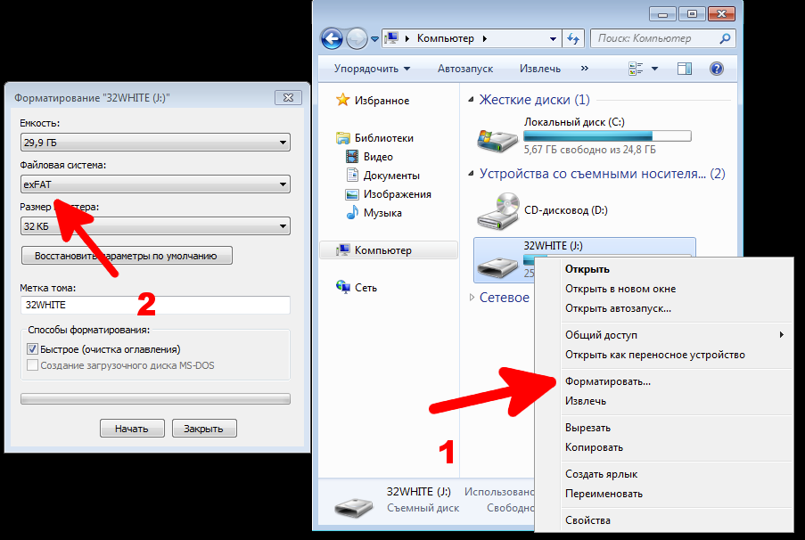 Отформатировать флешку в exFAT можно штатными средствами MS Windows:
