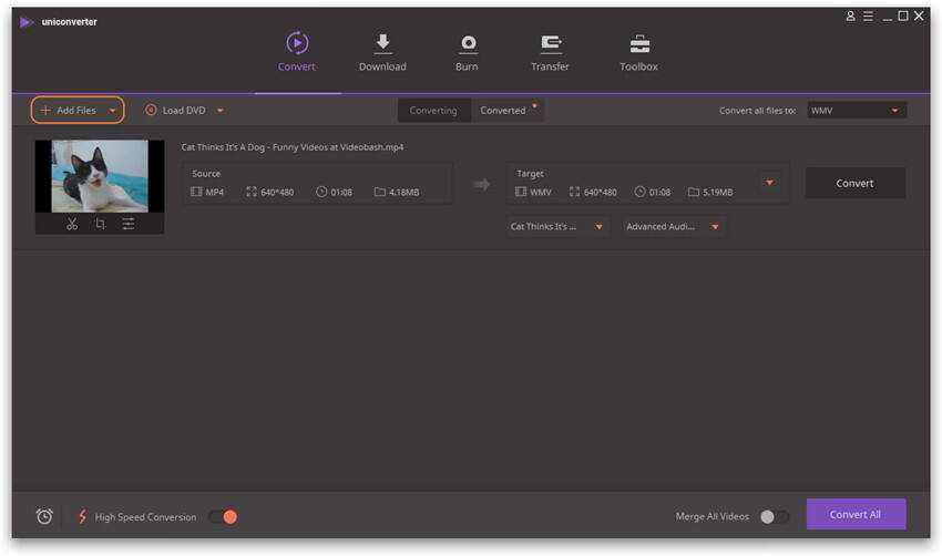 - Добавьте необходимое MP4 видео в конвертер Wondershare.