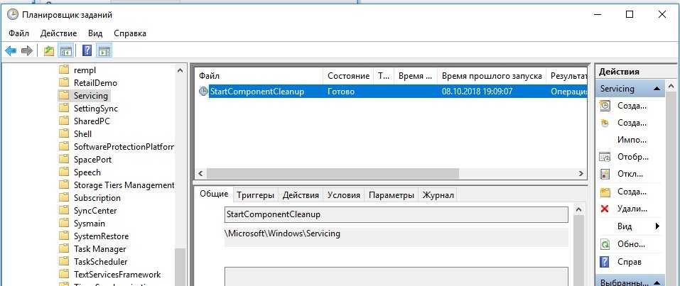 В планировщике задания Windows 10 и Windows Server 2016 есть специальное задание автоматического обслуживания, которое регулярно выполняет оптимизацию и очистку каталога WinSxS (выполняется действия, аналогичные команде dism с ключом StartComponentCleanup). Это задание StartComponentCleanup находится в разделе MicrosoftWindowsServicing. Данное задание запускается в фоновом режиме и автоматически удаляет версии компонентов старше 30 дней, которое были заменены более новыми версиями.