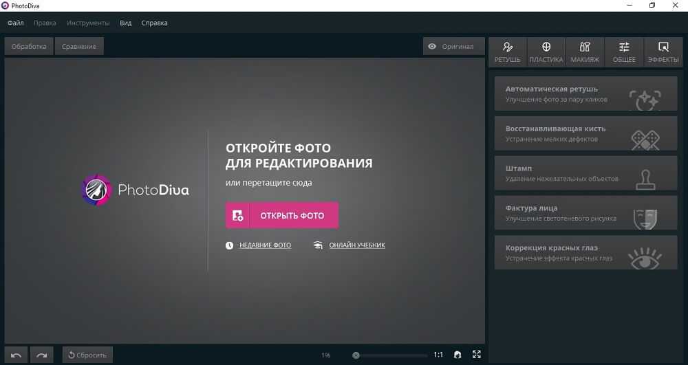Фоторедактор разработан специально для того, чтобы легко и быстро ретушировать и исправлять портретные снимки. Эта программа на русском языке с искусственным интеллектом автоматизирует работу. С помощью редактора с легкостью можно убрать мешки под глазами на фото, делать пластику, корректировать освещение, настраивать экспозицию, яркость и цветовой баланс и многое другое.