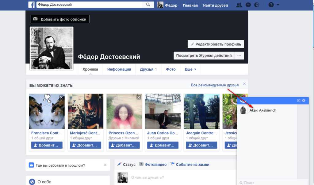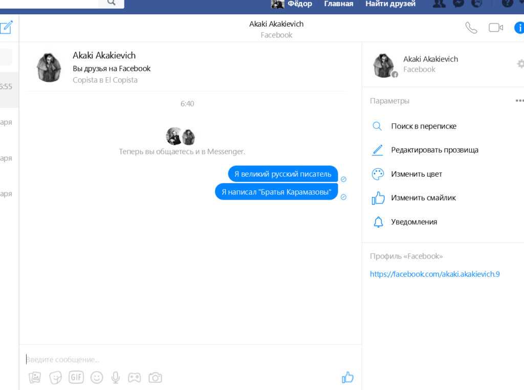 Далее откроется окошко со списком всех ваших друзей/знакомых, с кем вы переписывались ранее на «Facebook». Нажимаем на ник человека, сообщения с которым вы хотите удалить, после чего слева сразу откроется диалоговое окошко, в котором вы и общались с данным пользователем.