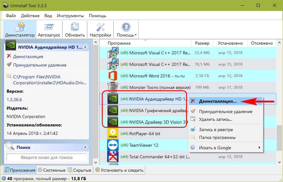Одна из лучших программ из числа продвинутых деинсталляторов – Uninstall Tool. Она, во-первых, поможет корректно деинсталлировать сами приложения драйверов, т.е. удалить их с зачисткой остатков в реестре и на диске.