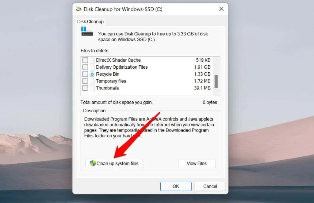- Нажмите кнопку «Clean up system files» (Очистить системные файлы)