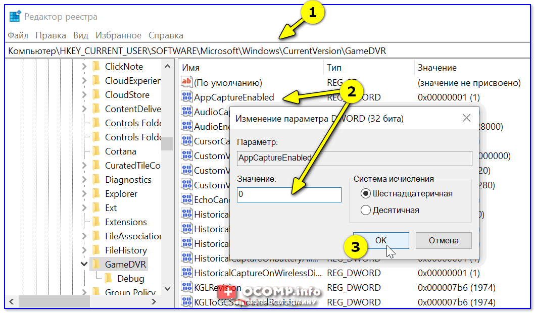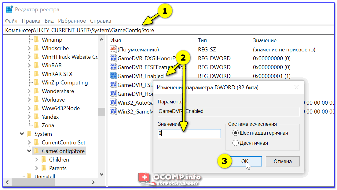 Тоже самое нужно сделать и с параметром «GameDVR_Enabled» в ветке ():