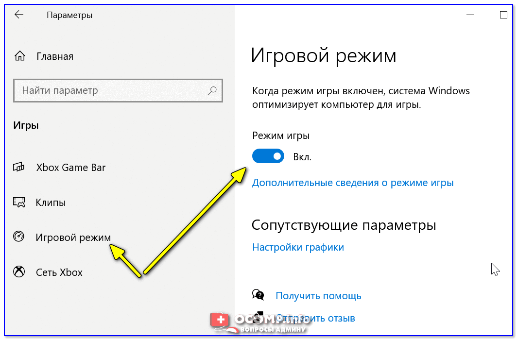 Кстати, я бы также порекомендовал доп. откл. игровой режим (в некоторых случаях эта оптимизация даже мешает…).