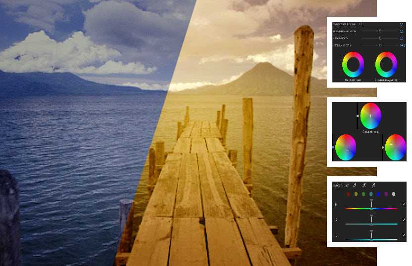 - Настройка теней, средних тонов и бликов с помощью цветовых кругов.