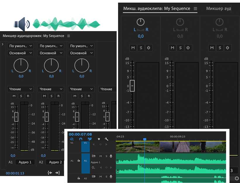 Premiere Pro предоставляет полноценное решение для редактирования аудио прямо в приложении. Одни из наиболее часто используемых настроек звука — это синхронизация звука с видео и уменьшение фонового шума. Для использования расширенных настроек микширования аудио можно отредактировать звук в Audition.