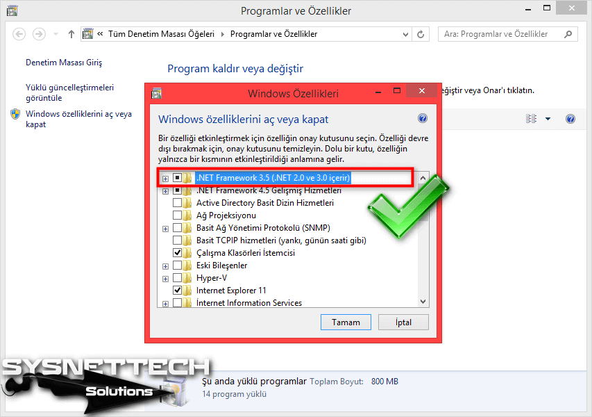 установите флажок .NET Framework 3.5 (включает.NET 2.0 и 3.0)