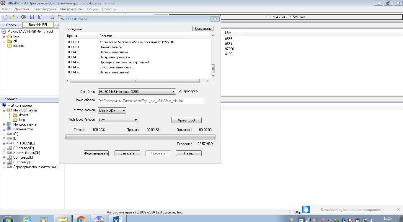 Далее открывают UltraISO и записывают скачанный с Интернета ISO образ на телефон, как на USB-флешку.