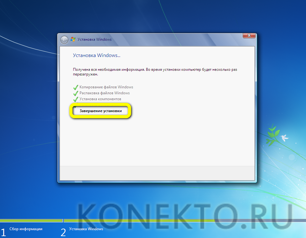 Компьютер может несколько раз перезагрузиться во время установки. Длительность процедуры зависит от технических характеристик компьютера. Как правило, это 20-60 минут.