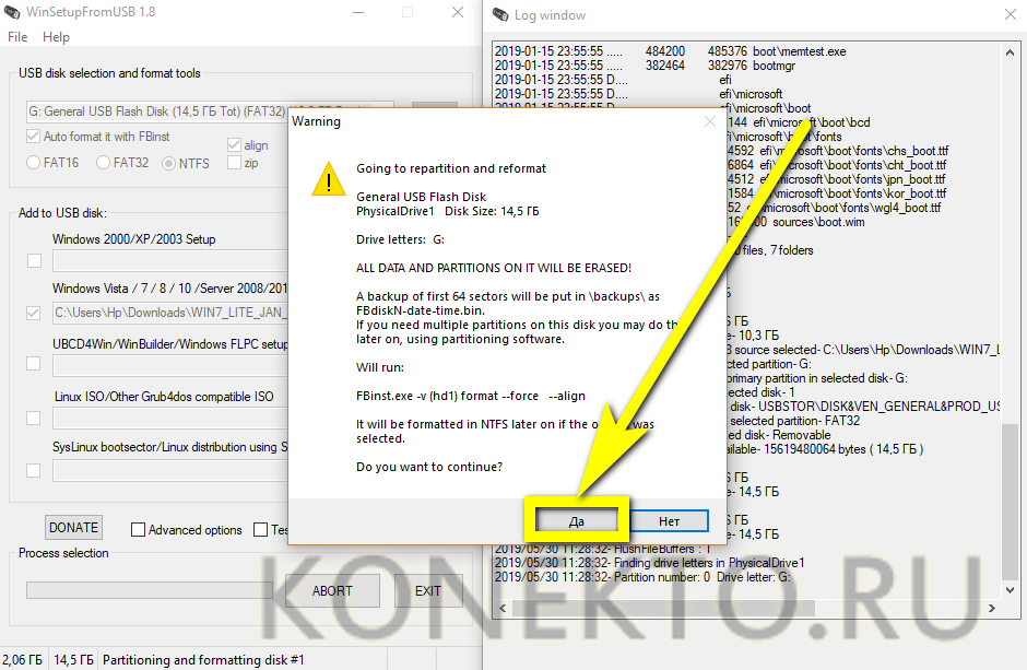Подтвердить своё желание отформатировать флеш-карту в выбранном режиме.