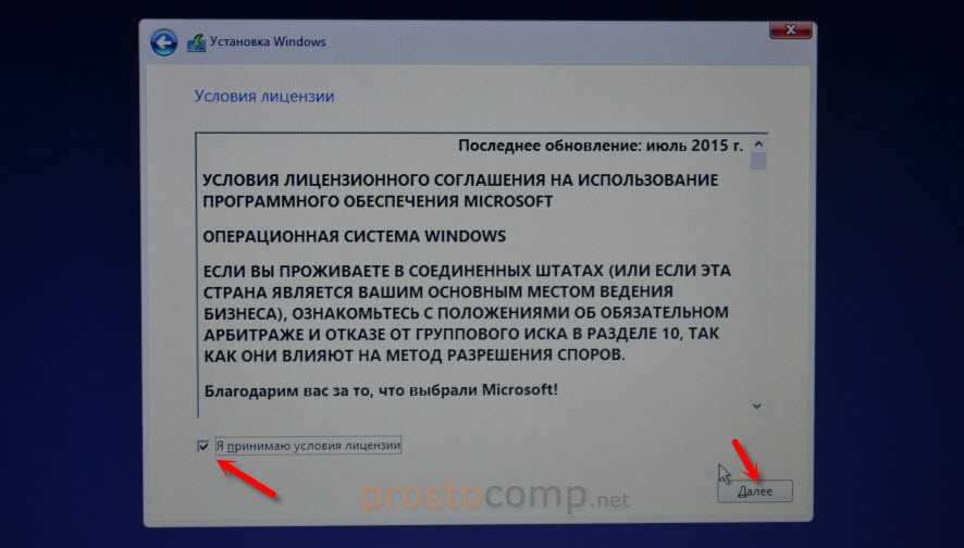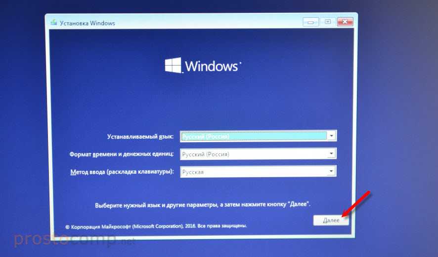 Для продолжения установки выделите раздел который вы хотите отдать под систему (он будет диском C) и нажмите «Далее».
