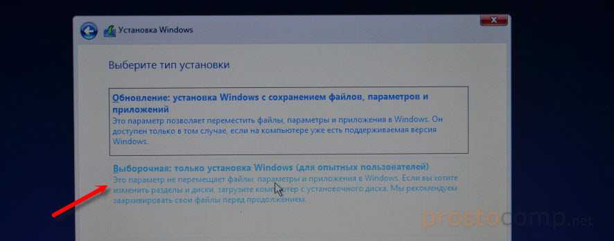 Выбираем тип установки: «Выборочная: только установка Windows».