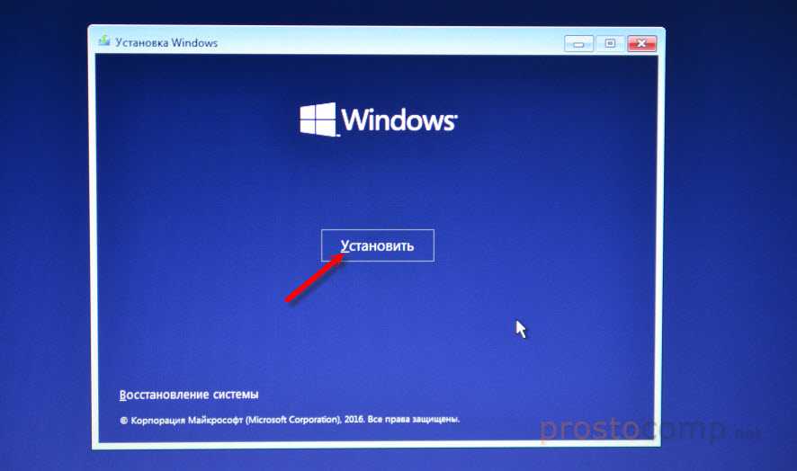 Стартовый экран выглядит следующим образом. Нажмите на кнопку «Установить».