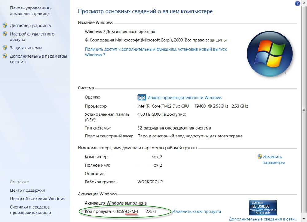 - «Компьютер». Здесь можно узнать основные технические характеристики вашего ПК, а также информацию об установленной операционной системе.
