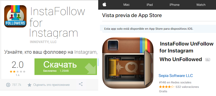 Если ваш основной инструмент для работы в Инсте – это смартфон, то увидеть отписки в Инстаграме можно с помощью одной из сотни утилит, «заботливо» представленных в магазинах приложений для операционной системы вашего мобильного дэвайса. Одним из наиболее востребованных приложений является Instafollow. Бесплатно скачать и установить утилиту можно в App Store (для Айфона) или Play Market (для Андроид).