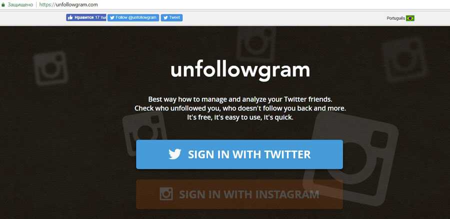 Начнем с того, как в режиме онлайн отслеживать изменения в списке фолловеров с компьютера. Вбив в любую поисковую систему вопрос «Как узнать, кто отписался в Инстаграме», вы получите приличный список с доступными сервисами. Какой из них выбирать, решать только вам. Наиболее известным и популярным долгое время считался сайт Unfollowgram (unfollowgram.com). Однако с некоторых пор он работает только для Твиттера. Причина – в Инстаграме изменились алгоритмы работы и правила пользования. Как результат, огромное количество сторонних сервисов по мониторингу и накрутке подписчиков просто перестали работать.