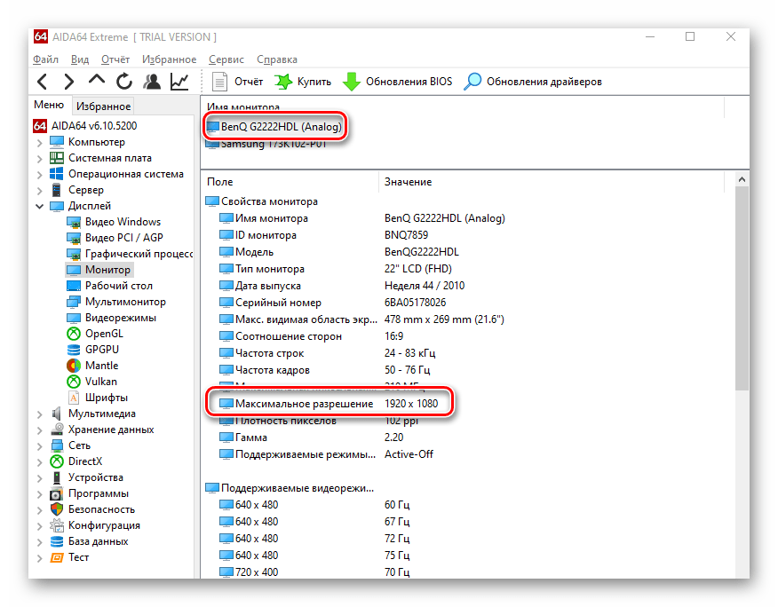 Посмотреть информацию можно при помощи программного обеспечения от сторонних разработчиков. Среди приложений, представленных в сети, стоит выделить AIDA64. Оно показывает не только количество пикселей на экране, но и другие важные характеристики.