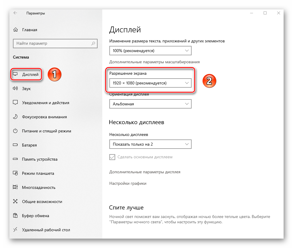 Обратите внимание, что указанное в «Параметрах» разрешение может отличаться от реального. Подобное происходит в ситуации, когда пользователь забывает обновить драйверы видеокарты