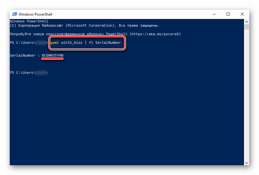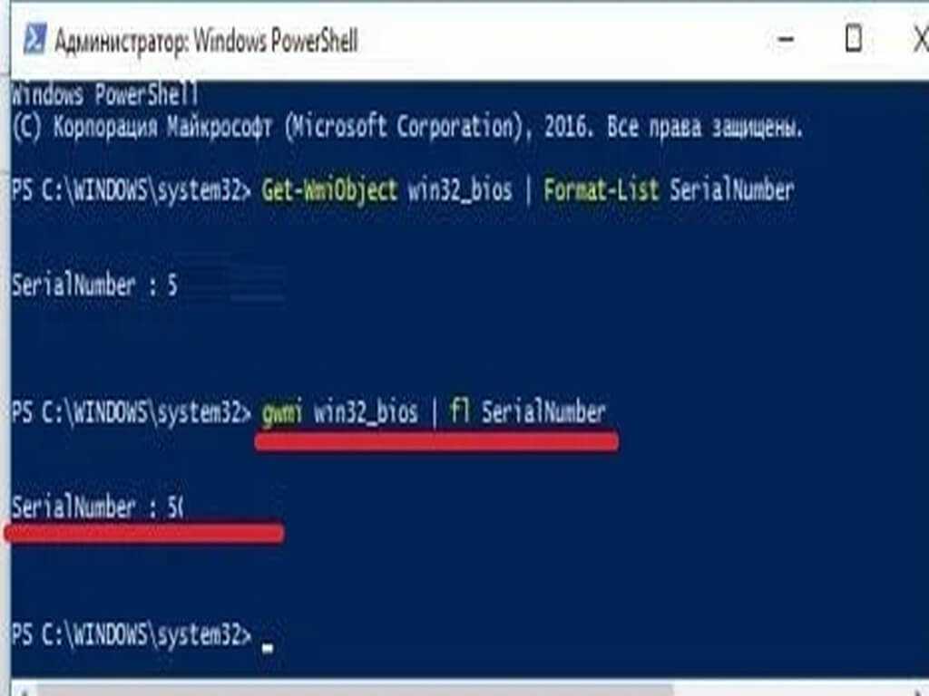Если у пользователя стоит ОС Windows 8.1 или Windows 10, то можно зайти в утилиту PowerShell и там посмотреть серийный номер компьютера.