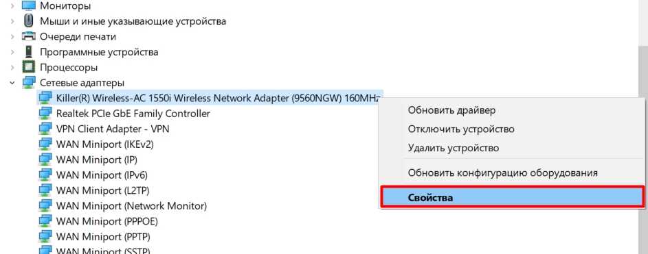 Мы сделаем подобное действие, но только с беспроводным сетевым адаптером. Опять заходим в «Диспетчер устройств». Далее открываем «Сетевые адаптеры» и находим наш Wi-Fi модуль – заходим в свойства.