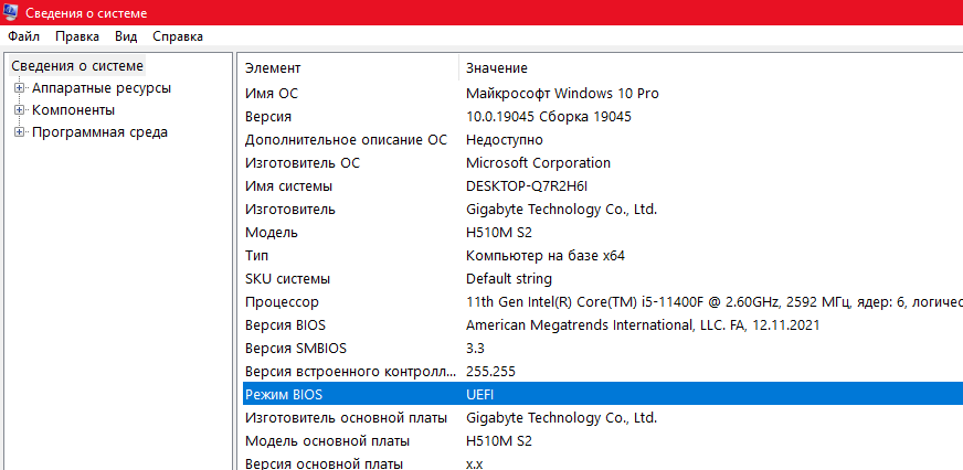 - Чтобы просмотреть информацию о системе, найдите в правом поле в первом столбце «режим BIOS».