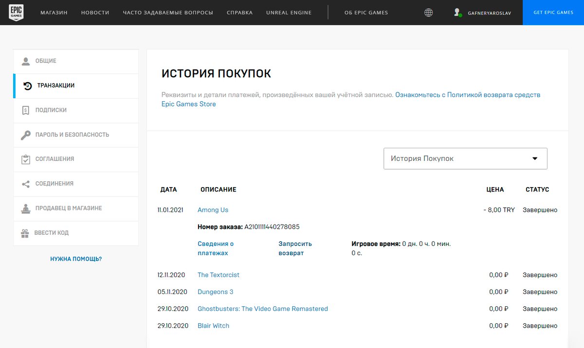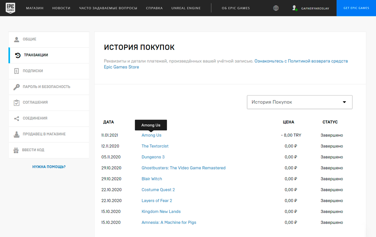 Мне возврат в «Эпик-сторе» понадобился, когда я купил мультиплеерную игру Among Us. Взял ее, находясь за границей. Скорость интернета была маленькой, так что перспективы получить удовольствие от многопользовательских матчей сразу улетучились. Ради рефанда даже не потребовалось общаться с техподдержкой. Как и в «Стиме», у «Эпика» процесс автоматизирован. Деньги на карту вернули через день.