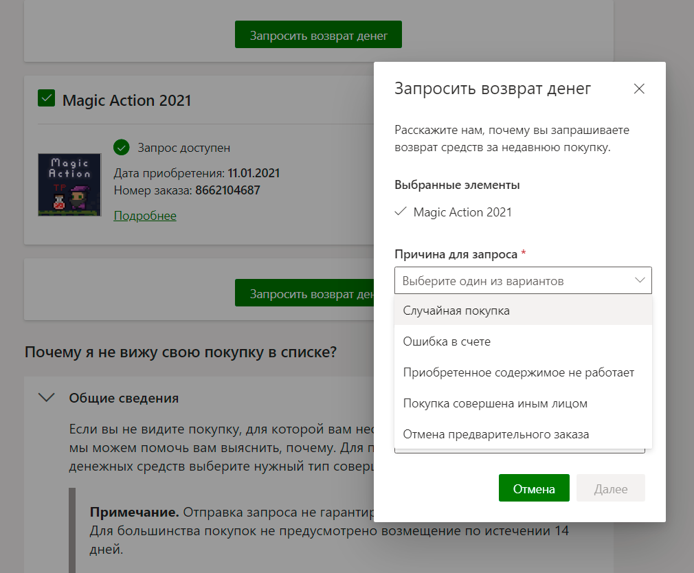 Примечание: возврат средств за отдельный продукт из набора чаще всего не предусмотрен. Если вы захотите вернуть деньги за один или несколько товаров из набора, вам поступят средства, потраченные на весь набор, а из библиотеки будут удалены все игры, программы и дополнения, включенные в него.