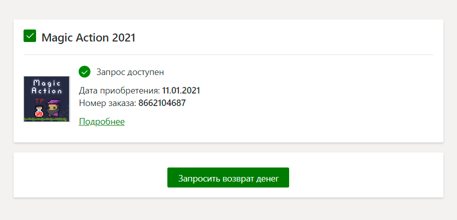 Microsoft Store. Это общий магазин игр для ПК и Xbox, и правила возврата здесь одинаковые. У меня нет консолей Xbox. Если очень хочется что-то пройти, беру консоль у друзей. Кроме того, я не пользуюсь «Микрософт-стором» для ПК, так как цены здесь в долларах, в отличие от «Стима», GOG и «Эпик-стора». Ради эксперимента купил одну игру и тут же оформил возврат.