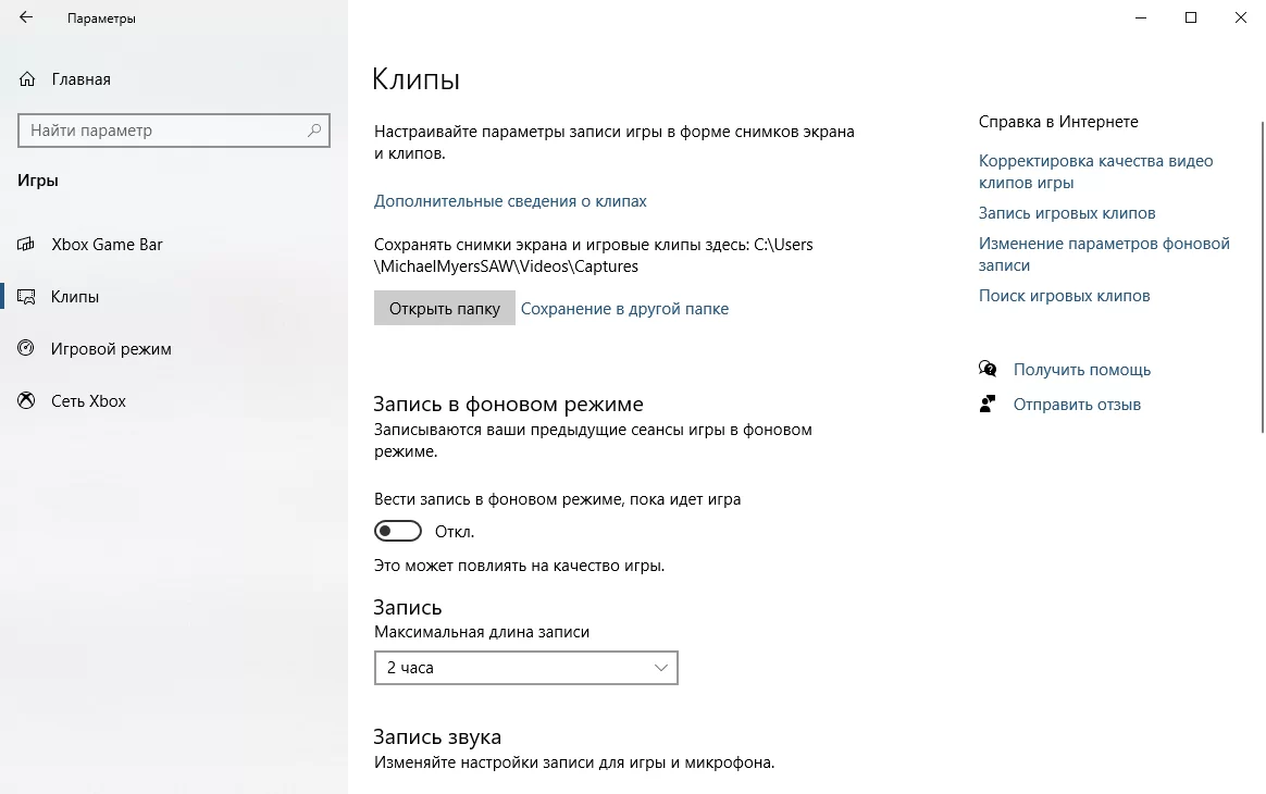 Когда через Game Bar пользователь записывает видеоролики и создает снимки экрана, он волен изменить некоторые опции для улучшения результатов работы. Чтобы их обнаружить, по открытию меню «Пуск» рекомендуется зайти в пункт настроек, в его окне нажать «Игры» и затем выбрать подраздел «Клипы» («Записи», «DVR для игр»).