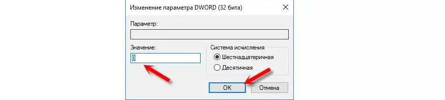 3. Выберите «десятичную» систему счисления. В области «значение» введите 0 за место 1. Щелкните OK, закройте все окна.