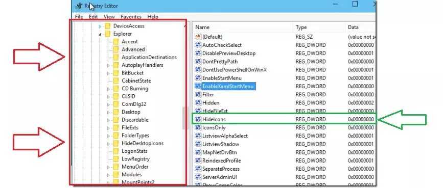 7. Вызываем окно редактирования параметра «HideIcons» и устанавливаем его значение как ноль.
