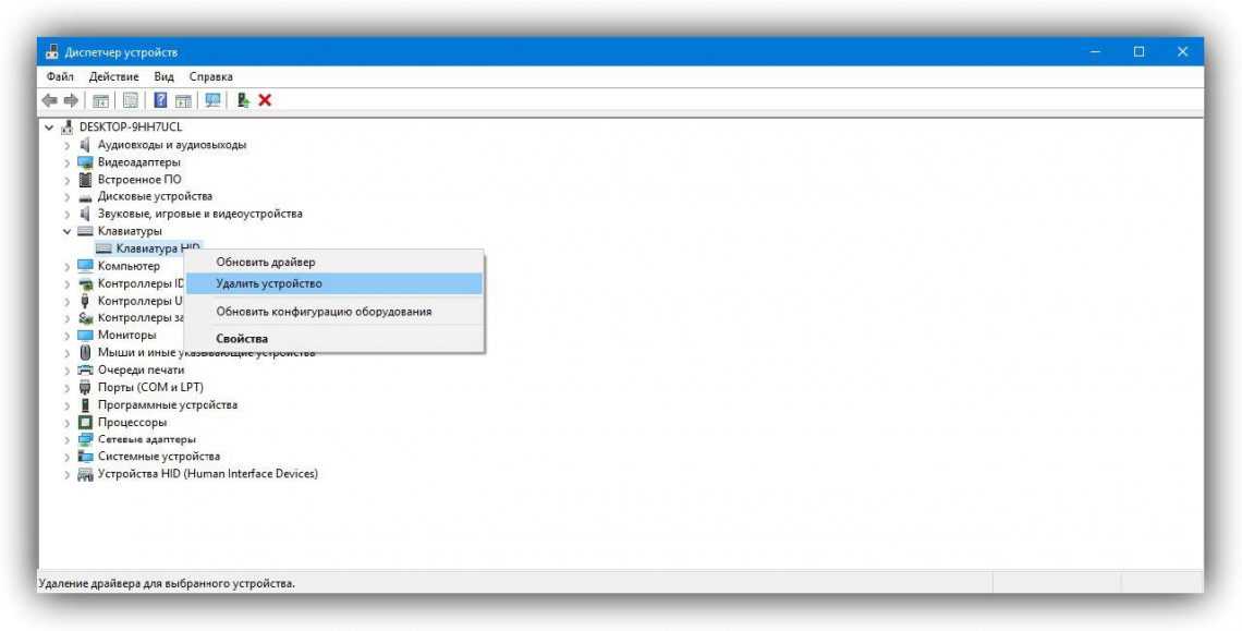 - Если у вас в списке много клавиатур, то удалите их все, после чего перезагрузите ПК.