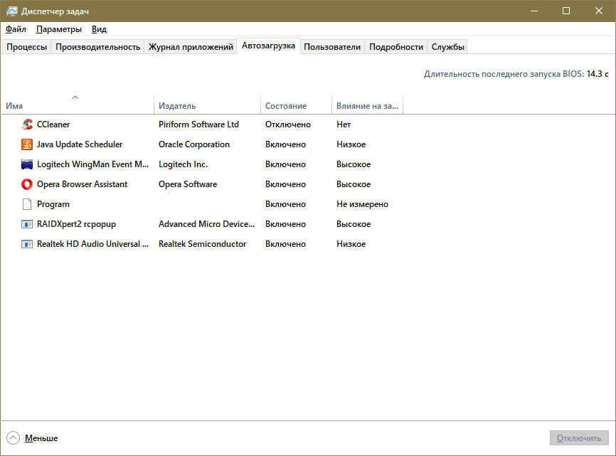 - Подобные программы можно найти во вкладке «Автозагрузка».