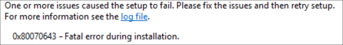 Этот код ошибки 0x80070643 всегда возникает при установке или обновлении ОС Windows или любого приложения на вашем компьютере. Сообщение об ошибке может отличаться. Но вы всегда можете увидеть код ошибки 0x80070643 за сообщением об ошибке.