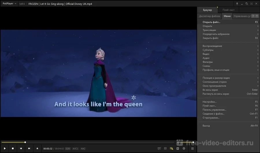 Этот бесплатный плеер для компьютера на русском языке воспроизводит любые форматы медиафайлов и позволяет проигрывать видеопоток с любых подключаемых устройств, в том числе аналоговое ТВ. На первый взгляд он может показаться простым, но PotPlayer — невероятно мощный медиаплеер со встроенными инструментами редактирования, функцией записи экрана и поддержкой новейших видеотехнологий.