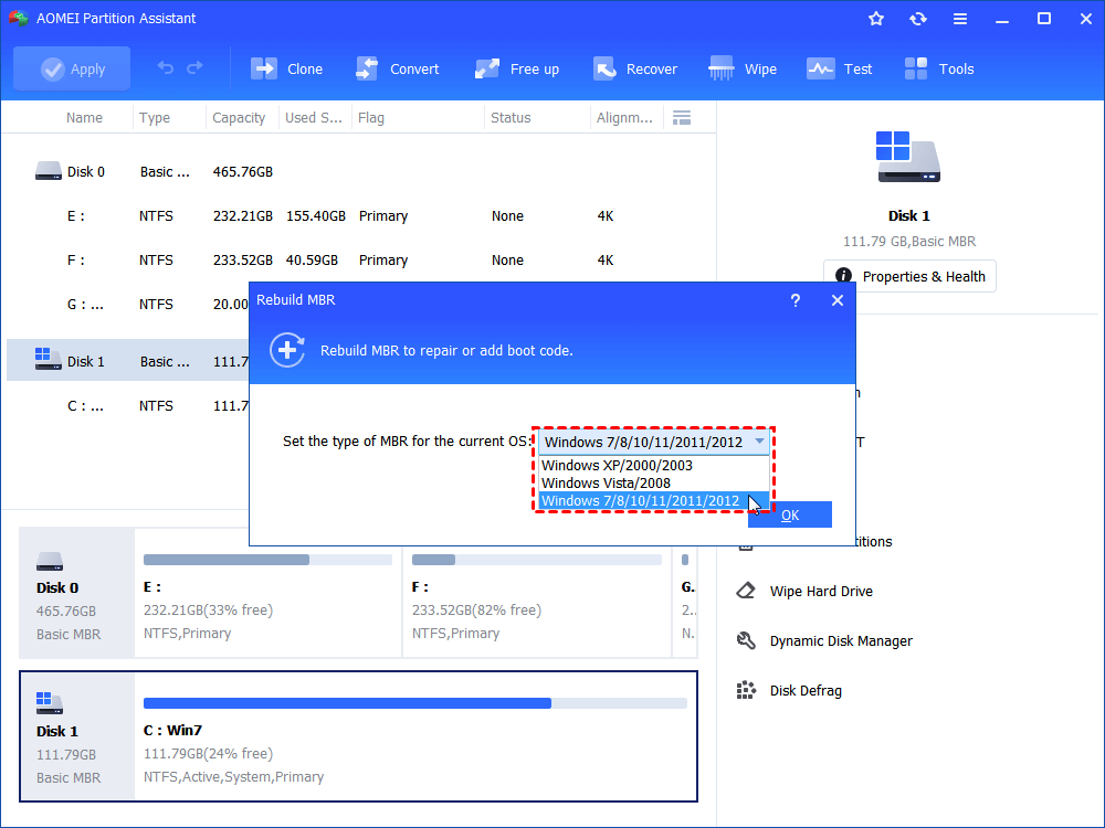 If you think the Command Prompt is too complicated to understand, you can turn to a free partition manager-AOMEI Partition Assistant Standard. It allows you to fix MBR with simple steps.