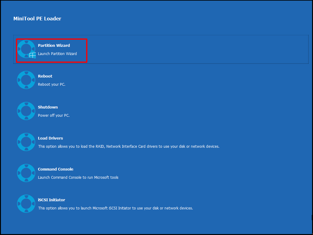 Step 2: Choose Partition Wizard in the MiniTool PE Loader page.