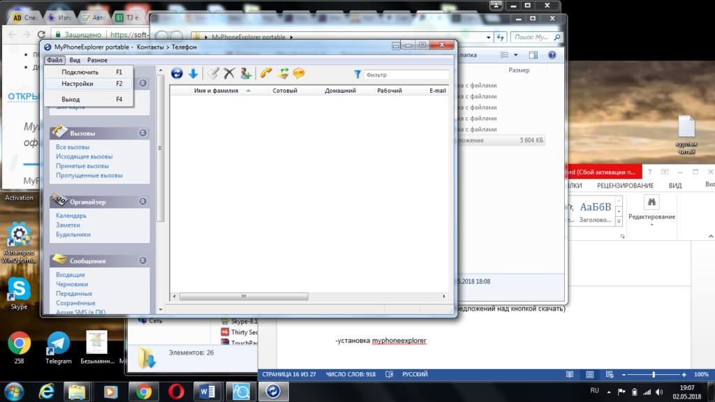 MyPhoneExplorer (МайФонЭксплоуер) позволяет управлять дистанционно устройством на ОС Android. Утилита предоставляется бесплатно, установить ее можно на стационарный компьютер и ноутбук с операционной системой Windows.