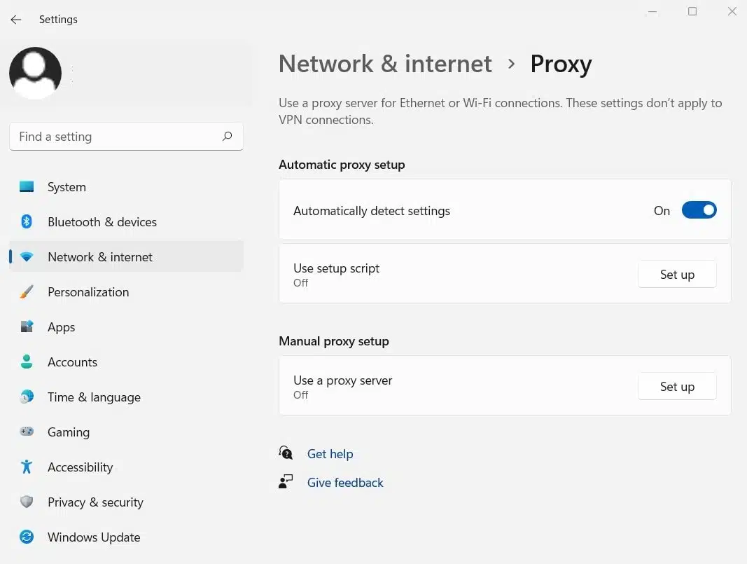 Open windows 11 settings and go to network & Internet. click on proxy options and check if the use proxy server option is on or off.