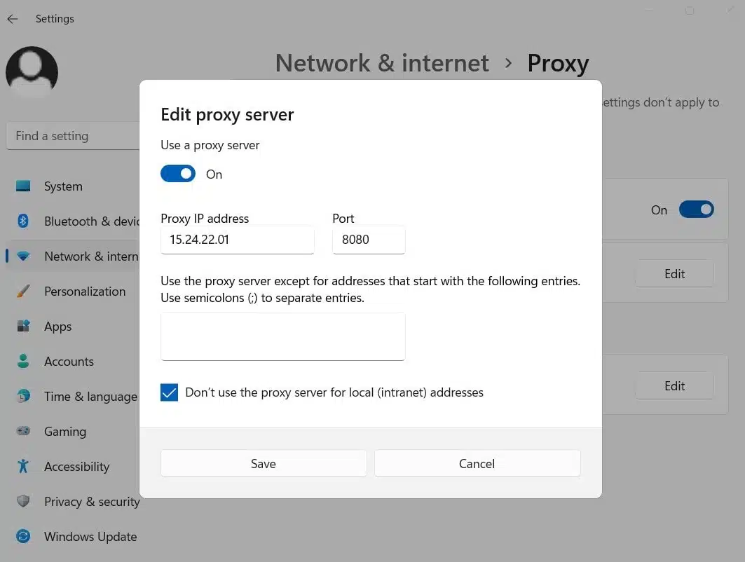 - In Windows 11 settings, click on Network & Internet and select Proxy on the right panel.