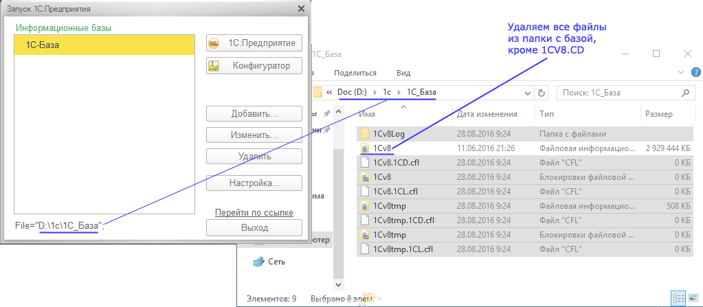 По поводу удаленных файлов не переживайте — это все служебные файлы, которые будут созданы заново в правильном формате при следующем запуске 1С Предприятие 8.3.