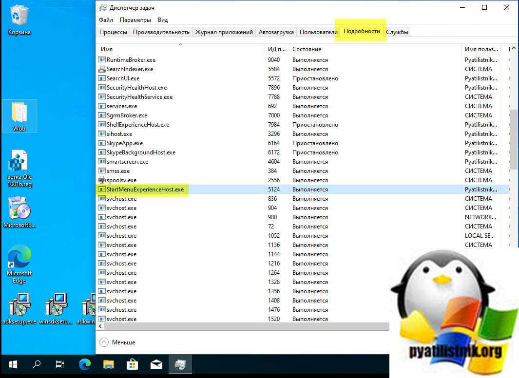 Хочу отметить, что данный процесс Microsoft.Windows.StartMenuExperienceHost появился в версии Windows 10 1903 и выше, поэтому не удивляйтесь, если вы его не обнаружите у себя в диспетчере задач. В диспетчере задач вы его можете увидеть в двух вкладках: