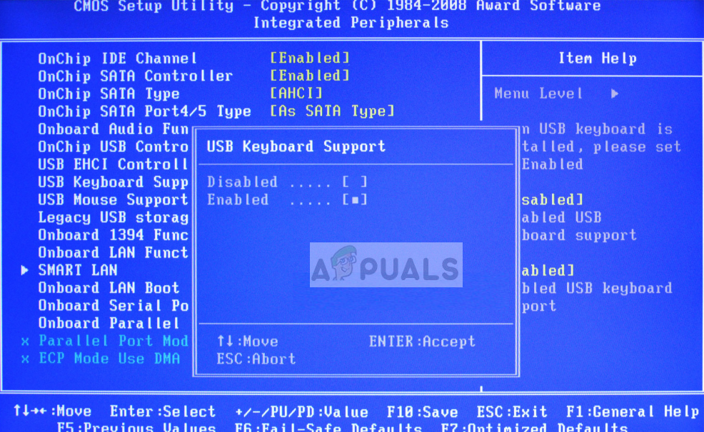 Перейдите к настройкам BIOS и проверьте, Поддержка USB-клавиатуры или же Поддержка устаревшей клавиатуры включен Если он выключен, включите его и проверьте, можете ли вы получить доступ к клавиатуре на экране входа в систему.