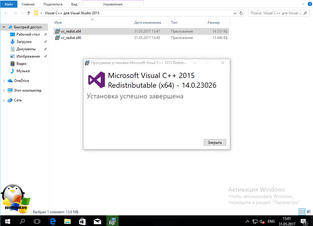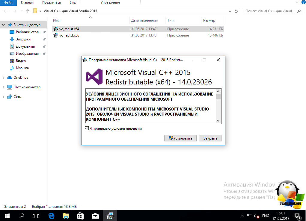 Начнется инсталляция Microsoft Visual C++ 2015