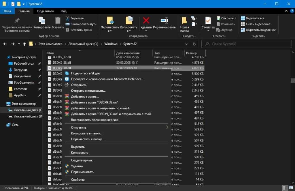 Если по какой-то причине вам не удалось обновить DirectX, как это было продемонстрировано выше, то, возможно, d3dx9_39.dll уже находится на вашем компьютере, но он поврежден/модифицирован. В таком случае вам нужно пробраться вглубь своей системы и избавиться от некорректно работающего файла. Сделать это можно следующим образом: