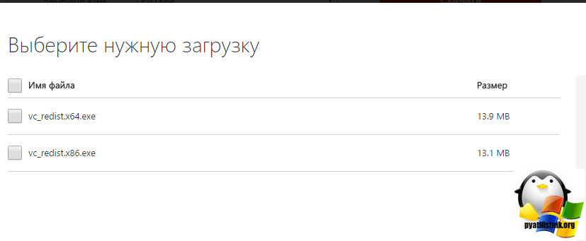 В моем примере это Windows 10 Creators Update (1703) 64-х битная, поэтому я и буду скачивать 64-х битную версию Microsoft Visual C++ Redistributable Package.