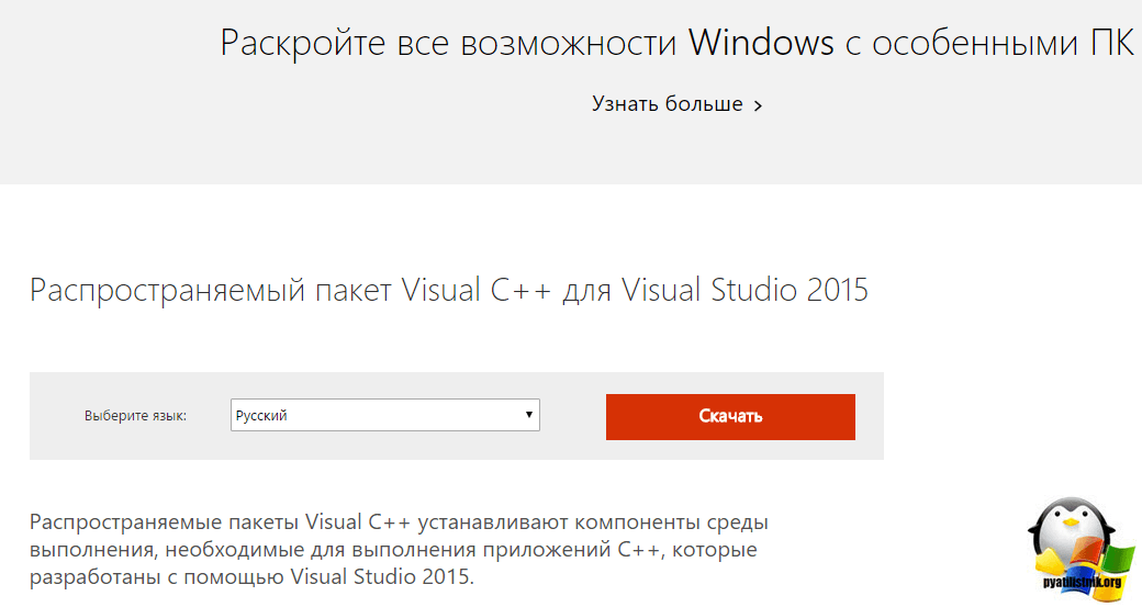 Установка Microsoft Visual C++ 2015 и выше (Официальный метод)