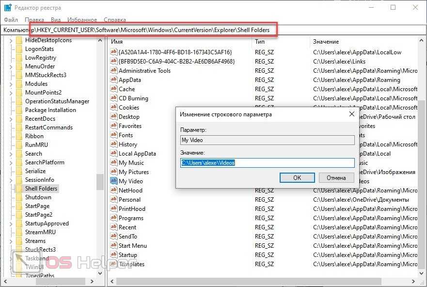 HKEY_CURRENT_USER SOFTWARE Microsoft Windows CurrentVersion Explorer Папки оболочки пользователя